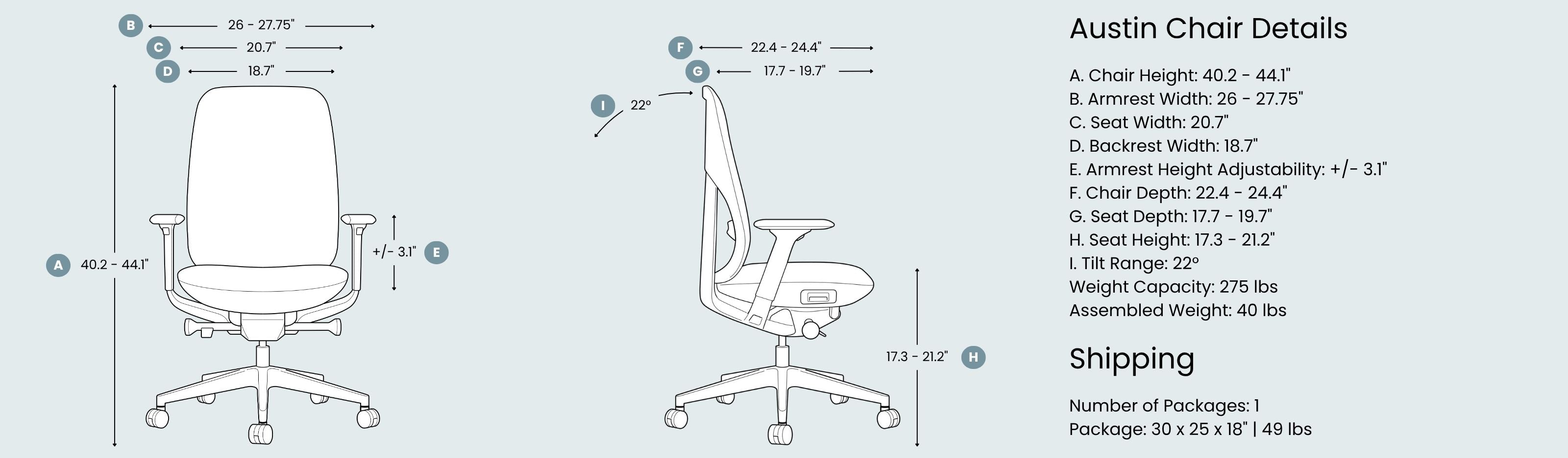 Designed with your well-being in mind, the Austin Chair seamlessly integrates features with sleek aesthetics, creating the perfect fusion of form and function.